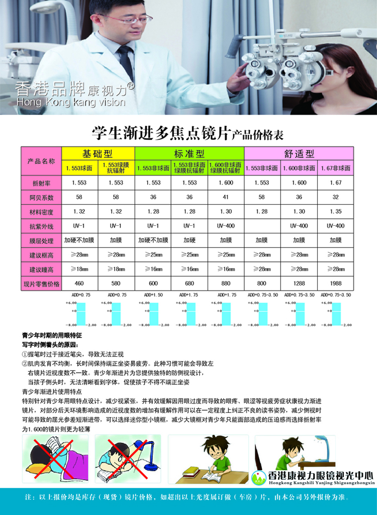 学生渐进多焦点镜片